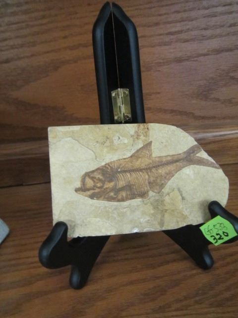 FOSSIL ROCK OF FISH ON STAND