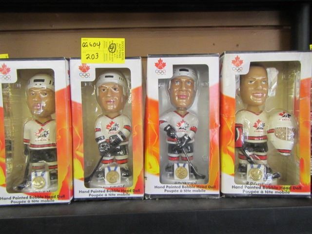 FOUR HAND PAINTED BOBBLE HEAD HOCKEY FIGURINES