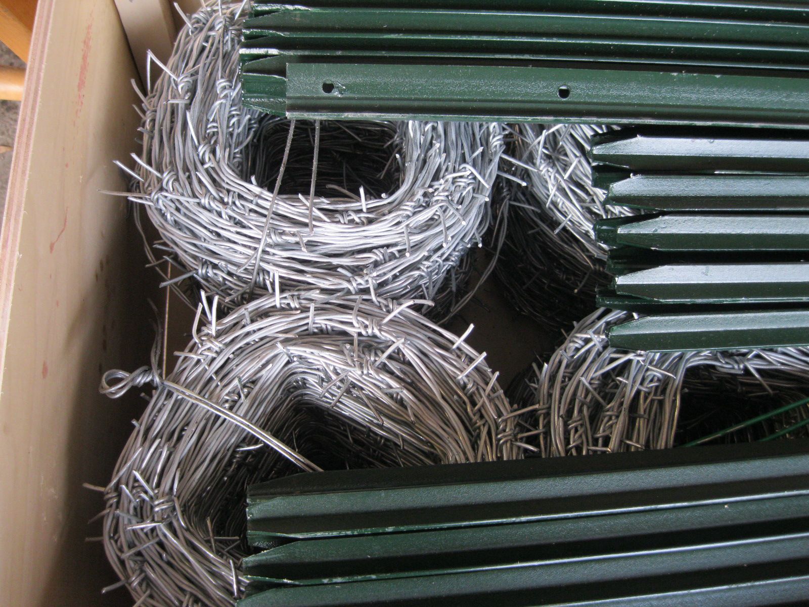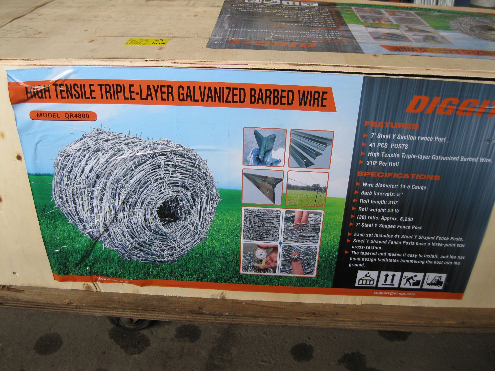 HIGH TENSILE TRIPLE LAYER GALVANZIED BARBWIRE W/20 ROLLS OF FENCING (310' PER ROLL) & 41 POSTS