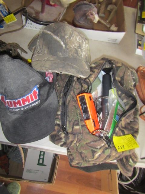 HUNTING BAG W/CONTENTS & 2 HATS