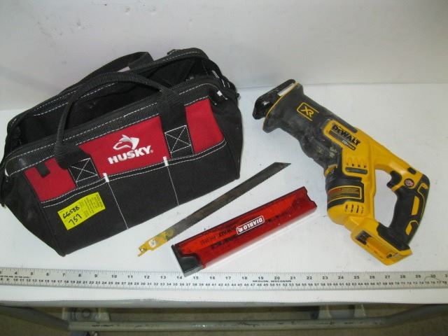 HUSKY BAG WITH DEWALT 20 VOLT MAX SAWZALL WITH BLADES NO CHARGER NO BATTERY