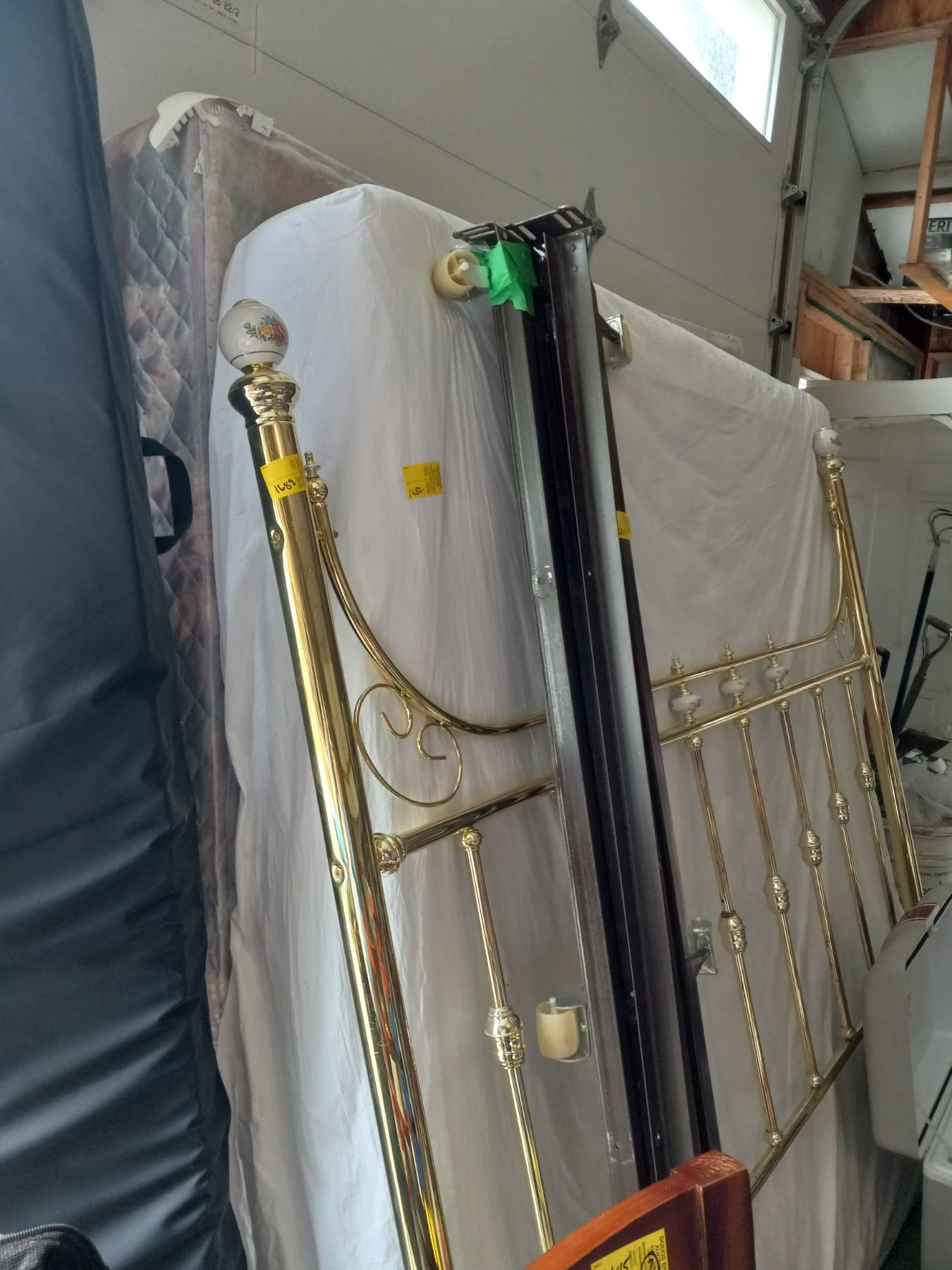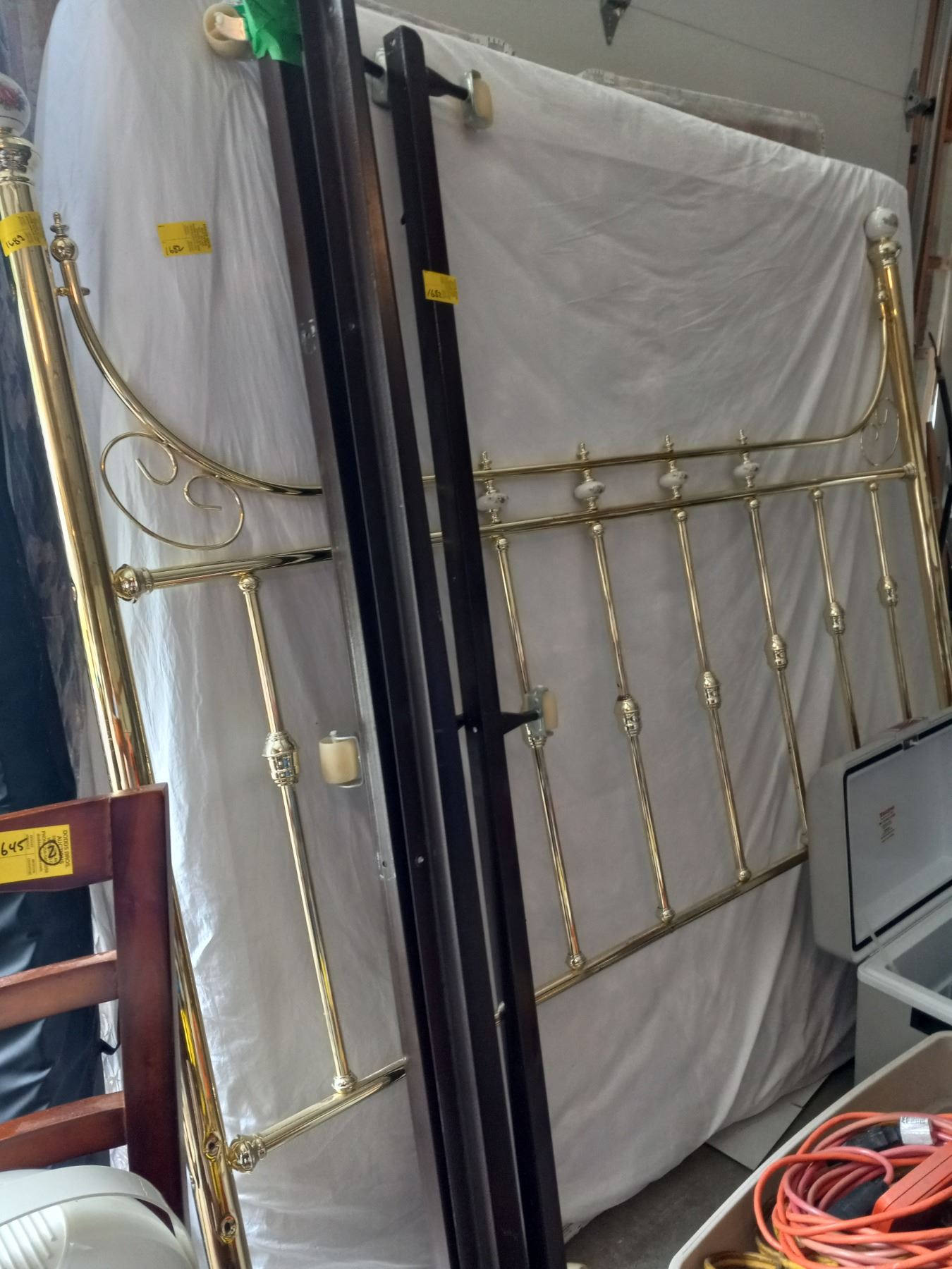 KING SIZE BED, BOX SPRING, ROLLER FRAME, BRASS HEADBOARD