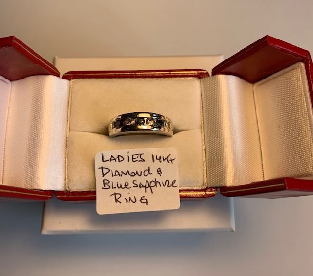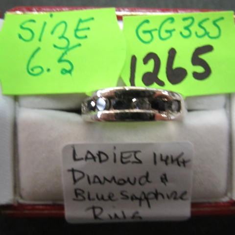 LADIES 14KT DIAMOND & BLUE SAPPHIRE RING - SZ 6.5