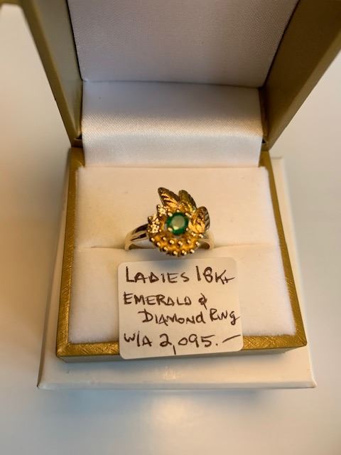LADIES 18KT EMERALD & DIAMOND RING - W/A - $2,095. - SZ 7.5
