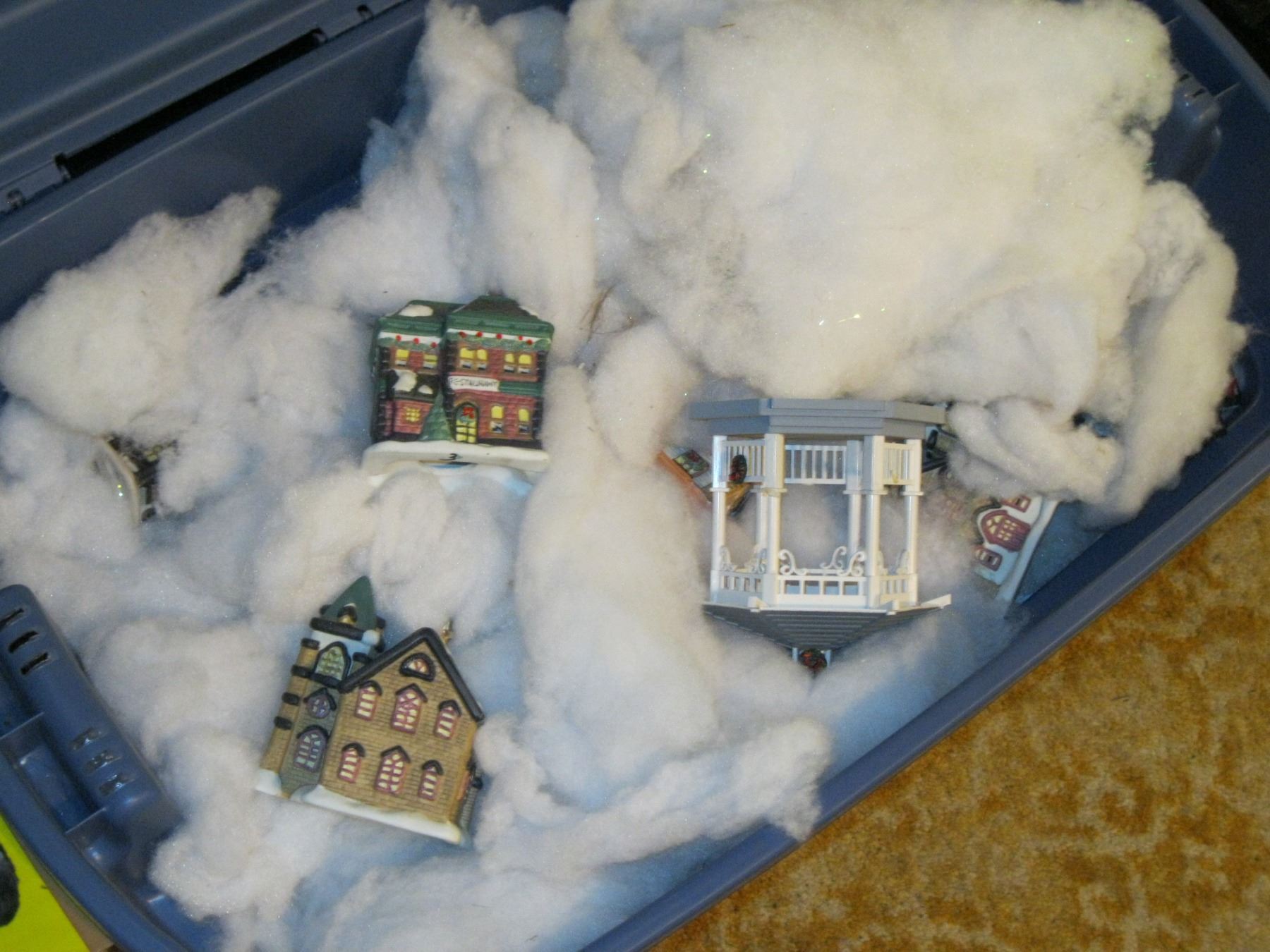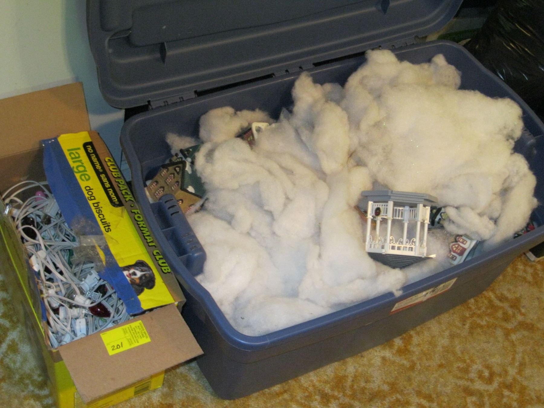 LARGE BIN W/ASSORTED XMAS HOUSES, ETC.