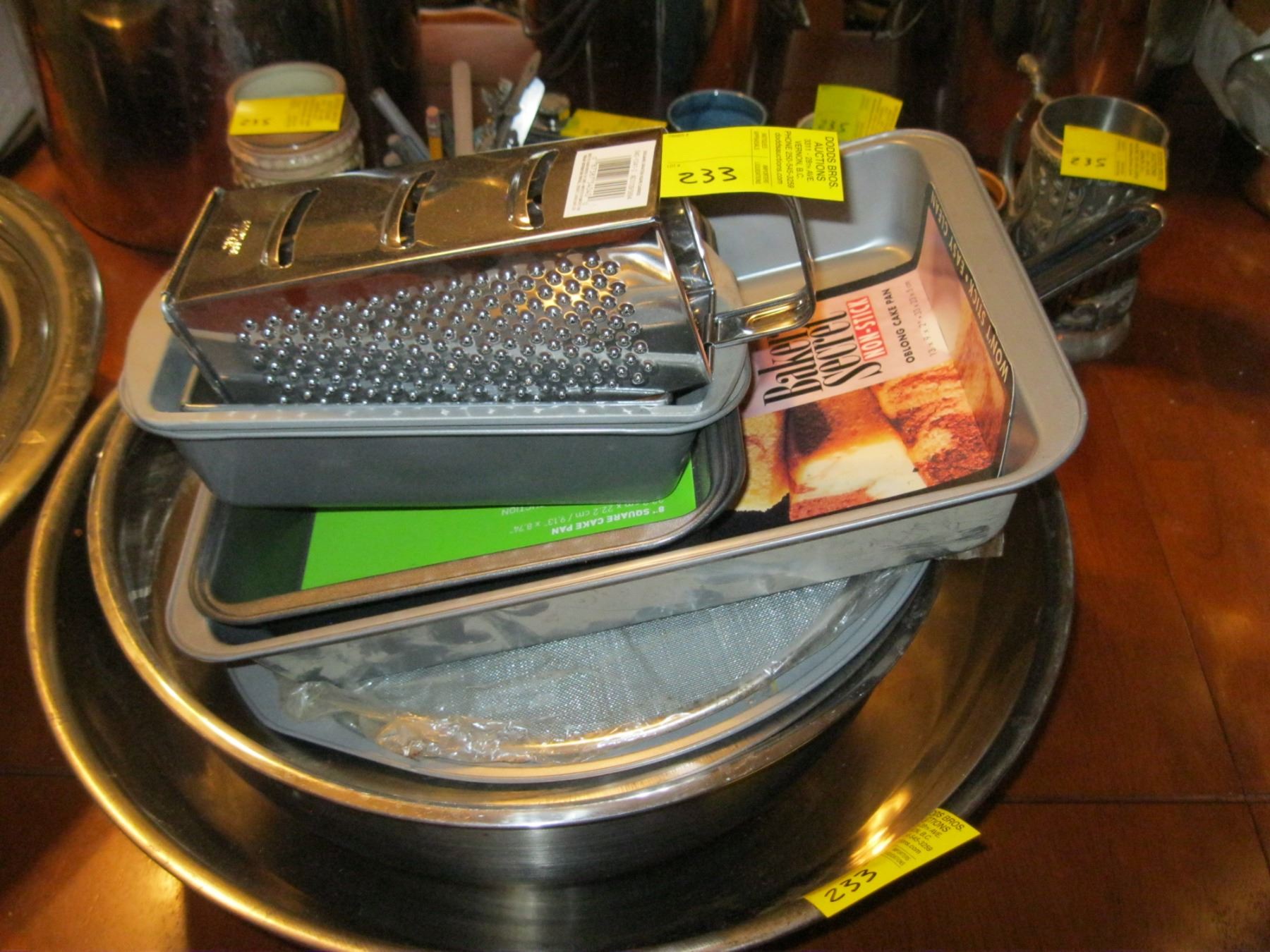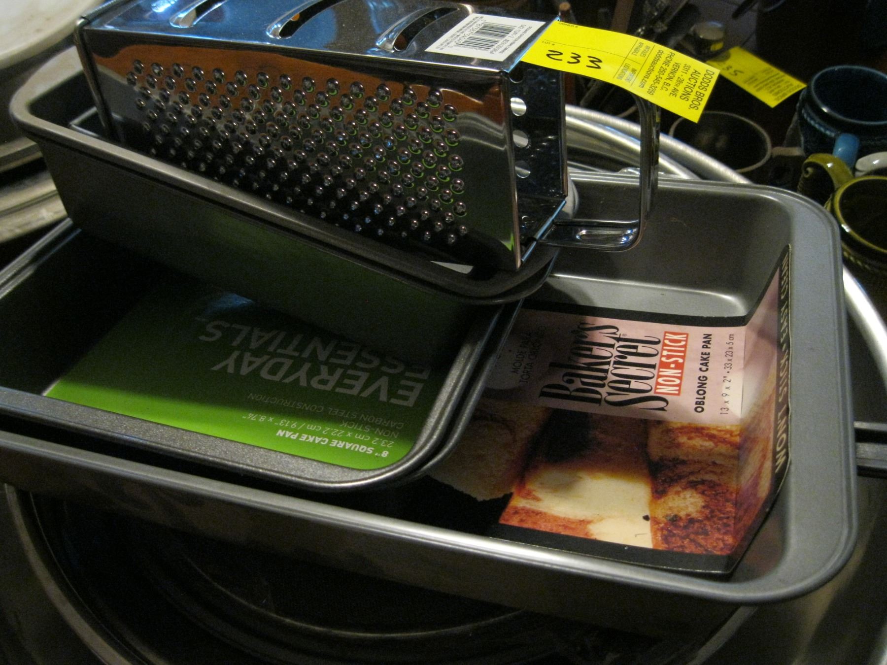 LARGE MIXING BOWLS, BAKING PANS, GRATER, ETC.