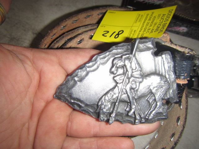 LEATHER BELT & 2 BELT BUCKLES