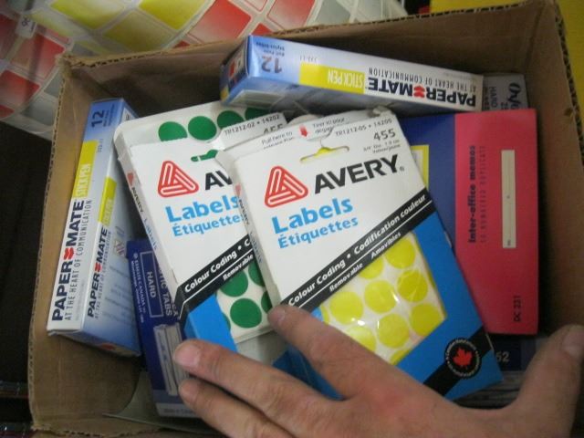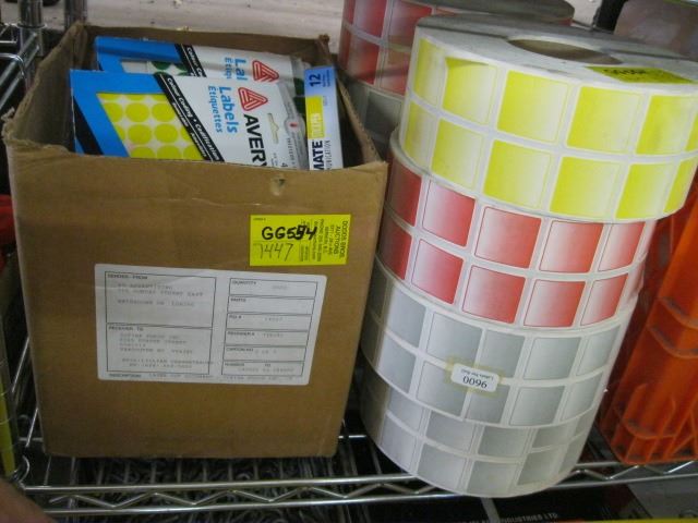 LG. LOT OF ASST. LABELS, PENS, PLASTIC TABS, ETC.
