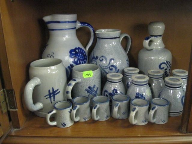 LG. SET OF GREY & BLUE POTTERY DISHWARE