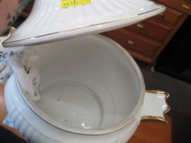 LG. WHITE & GOLD CERAMIC DECORATIVE VASE WITH LID