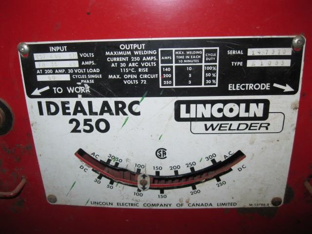 LINCOLN WELDER IDEALARC 250. NO CABLES