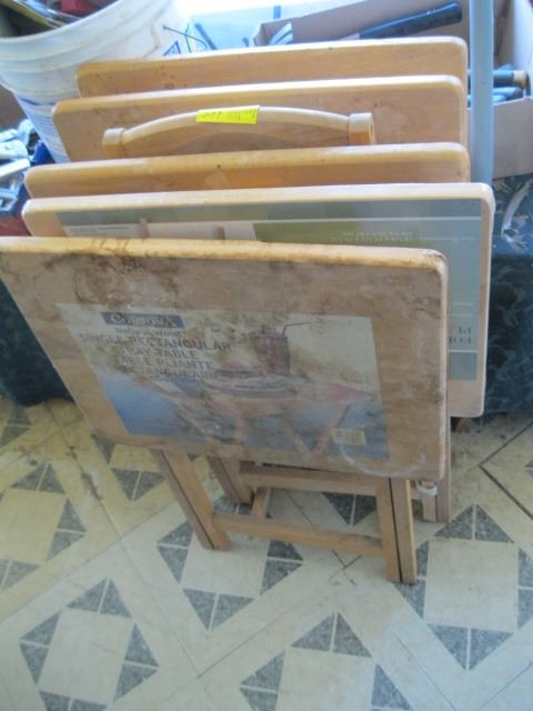 LOT OF 8 FOLDING WOODEN TRAY TABLES W/1 STAND