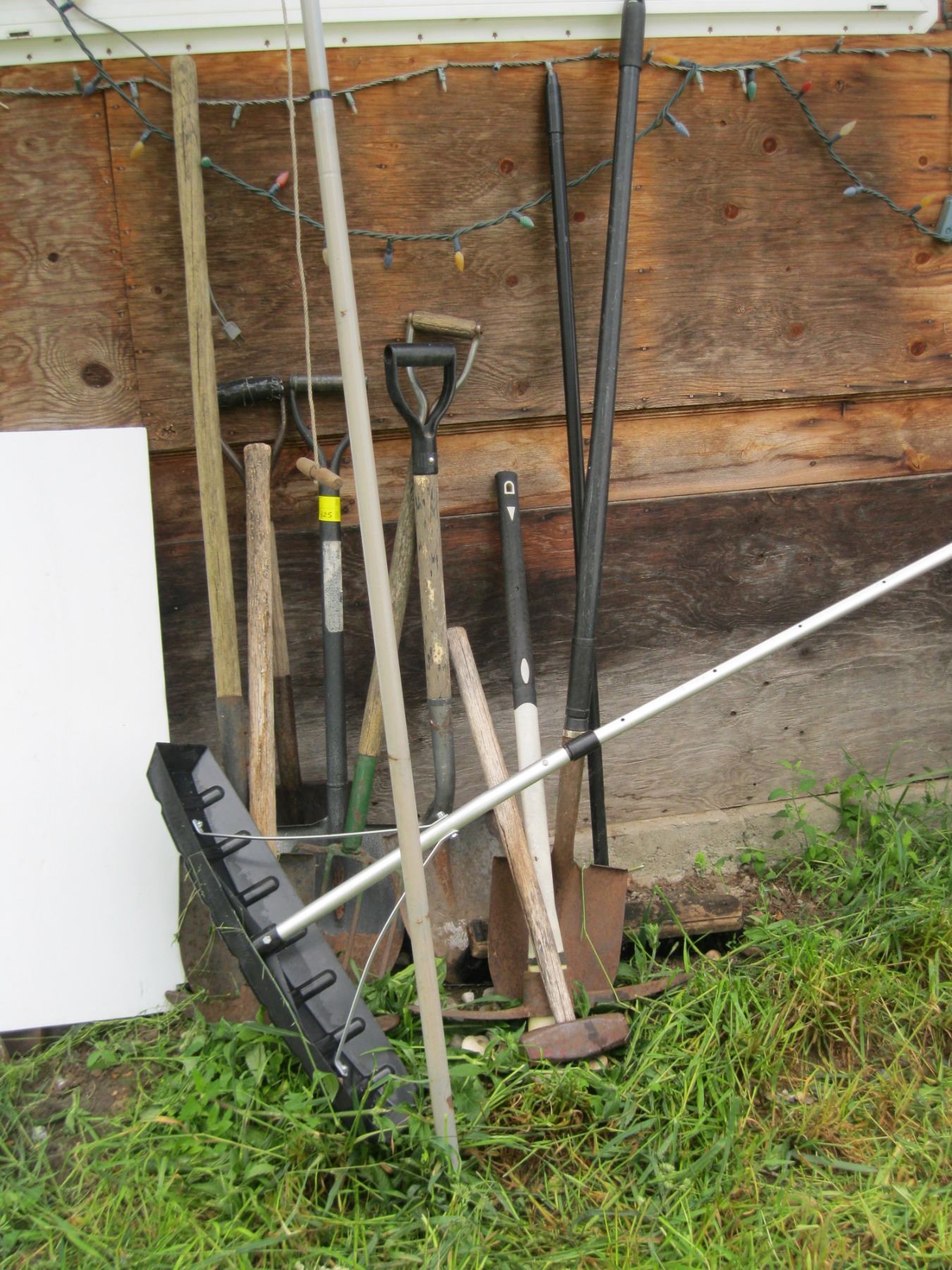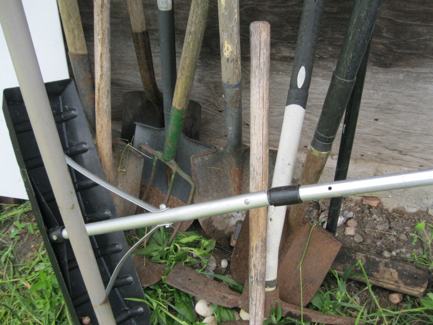 LOT OF MISC. - SHOVELS, PITCHFORK, SLEDGEHAMMER, ETC.