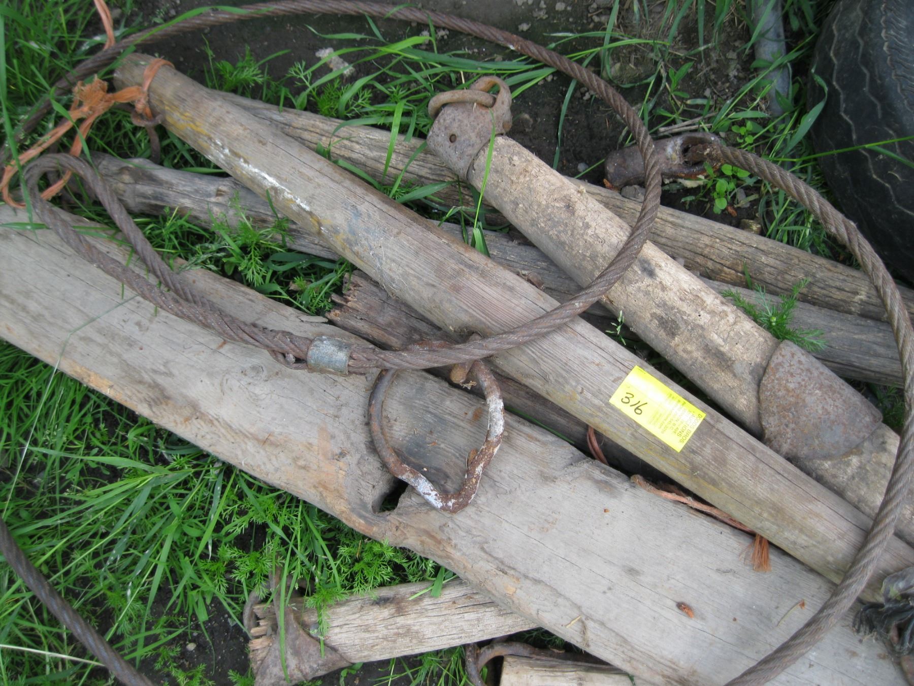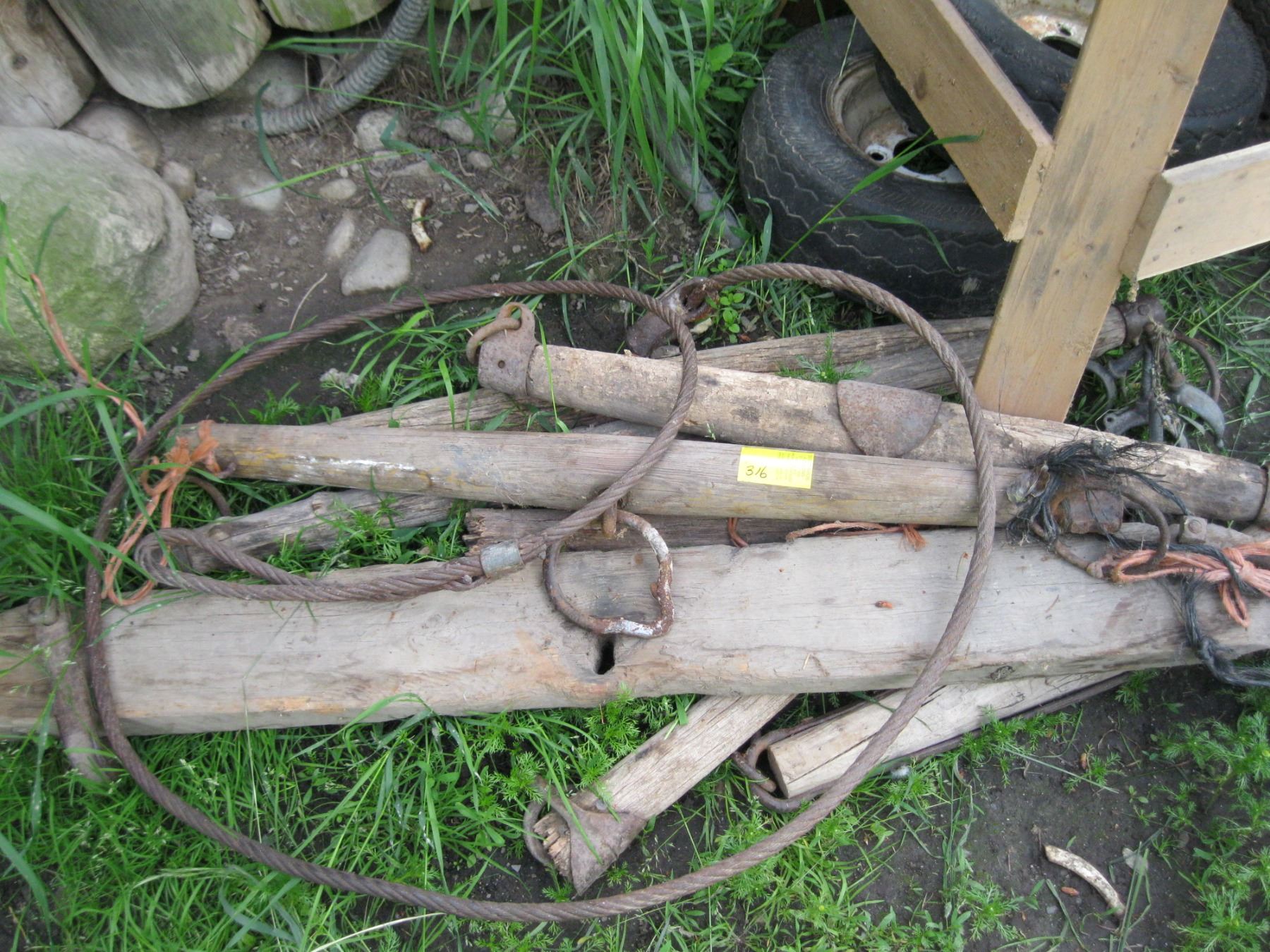 LOT OF WOODEN SINGLE TREES & DOUBLE TREES CABLE, ETC.