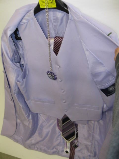 MAUVE LONG SUIT JACKET WITH VEST, PANTS, TIES, ETC.