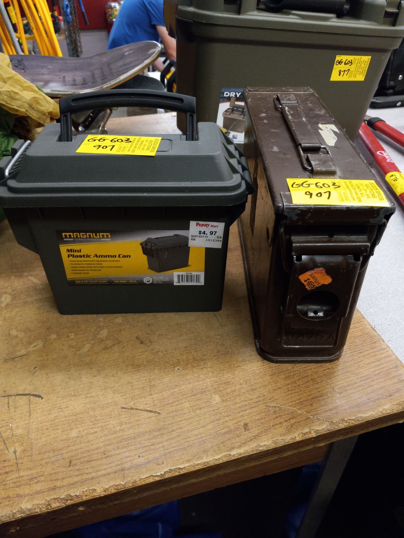 METAL MILITARY AMMO BOX AND A MINI PLASTIC AMMO CAN