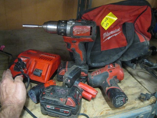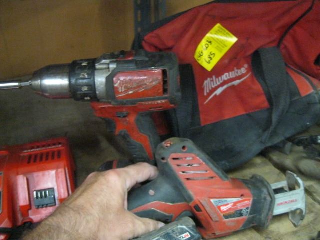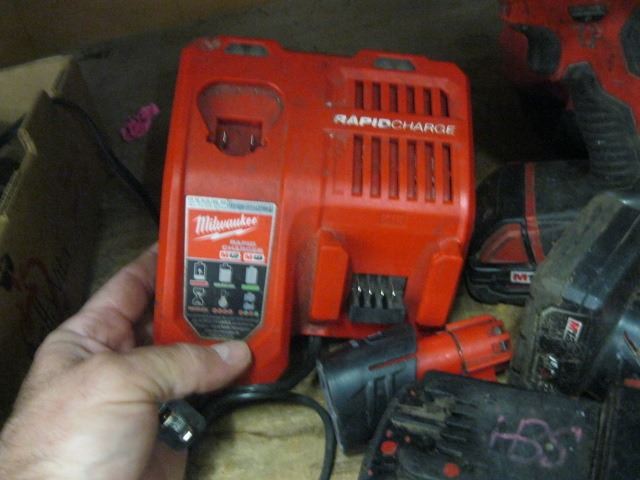 MILWAUKEE BAG WITH ASSORTED TOOLS AND CHARGERS
