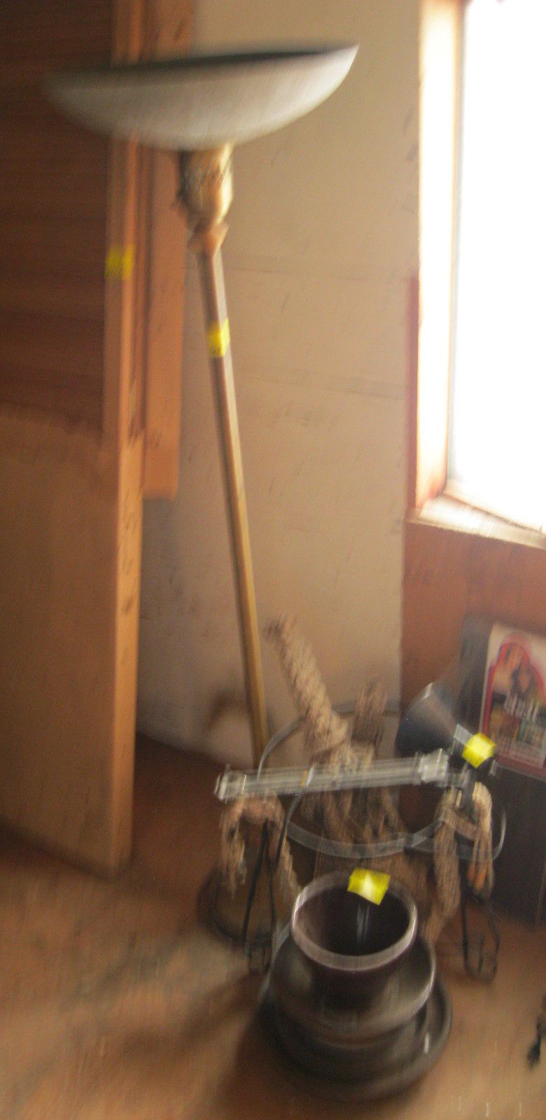 MISC: FLOOR LAMP, INSULATOR PLANTER, LIGHT SHELF BOARDS, ETC.