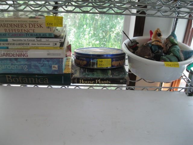 MISC. GARDENING BOOKS, SEEDS, GNOMES, ETC.