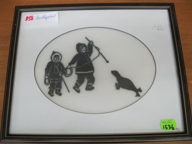 NEEDLEPOINT PICTURE OF ESKIMO & SEAL