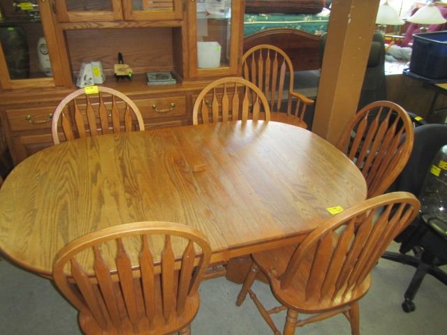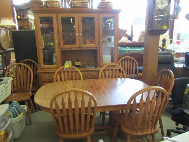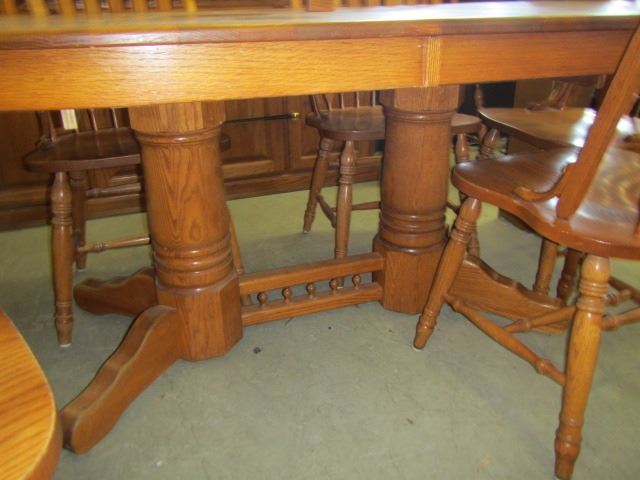 OAK DINING TABLE WITH 8 CHAIRS AND 2 PC HUTCH BUFFET