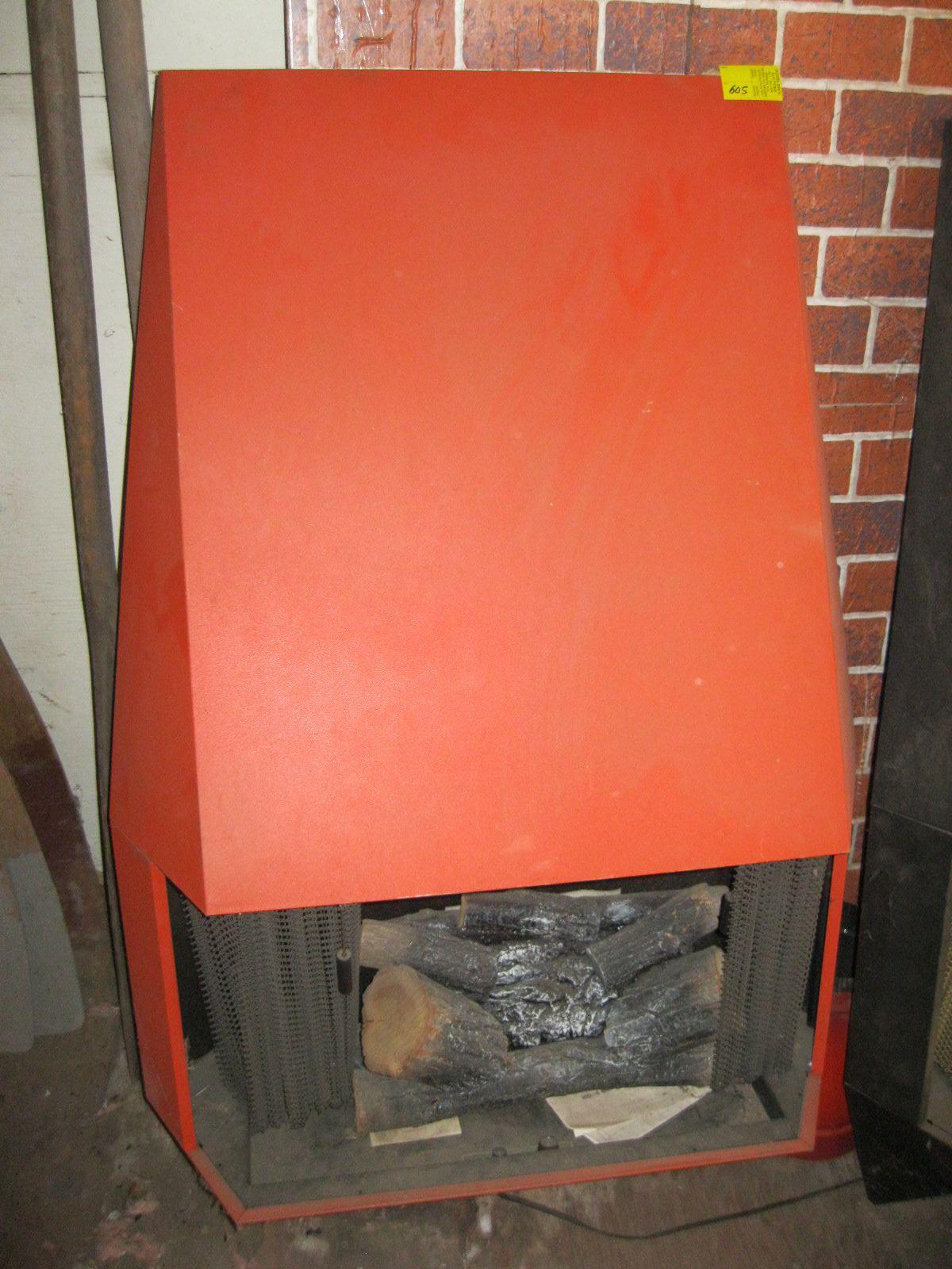 ORANGE WALL MOUNT DECORATIVE MID CENTURY MODERN FIREPLACE W/ARTIFICIAL BRICK BACK