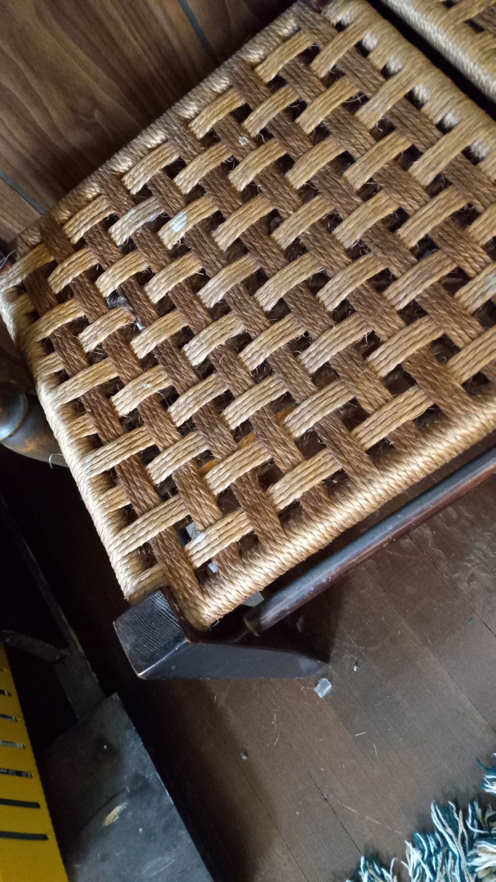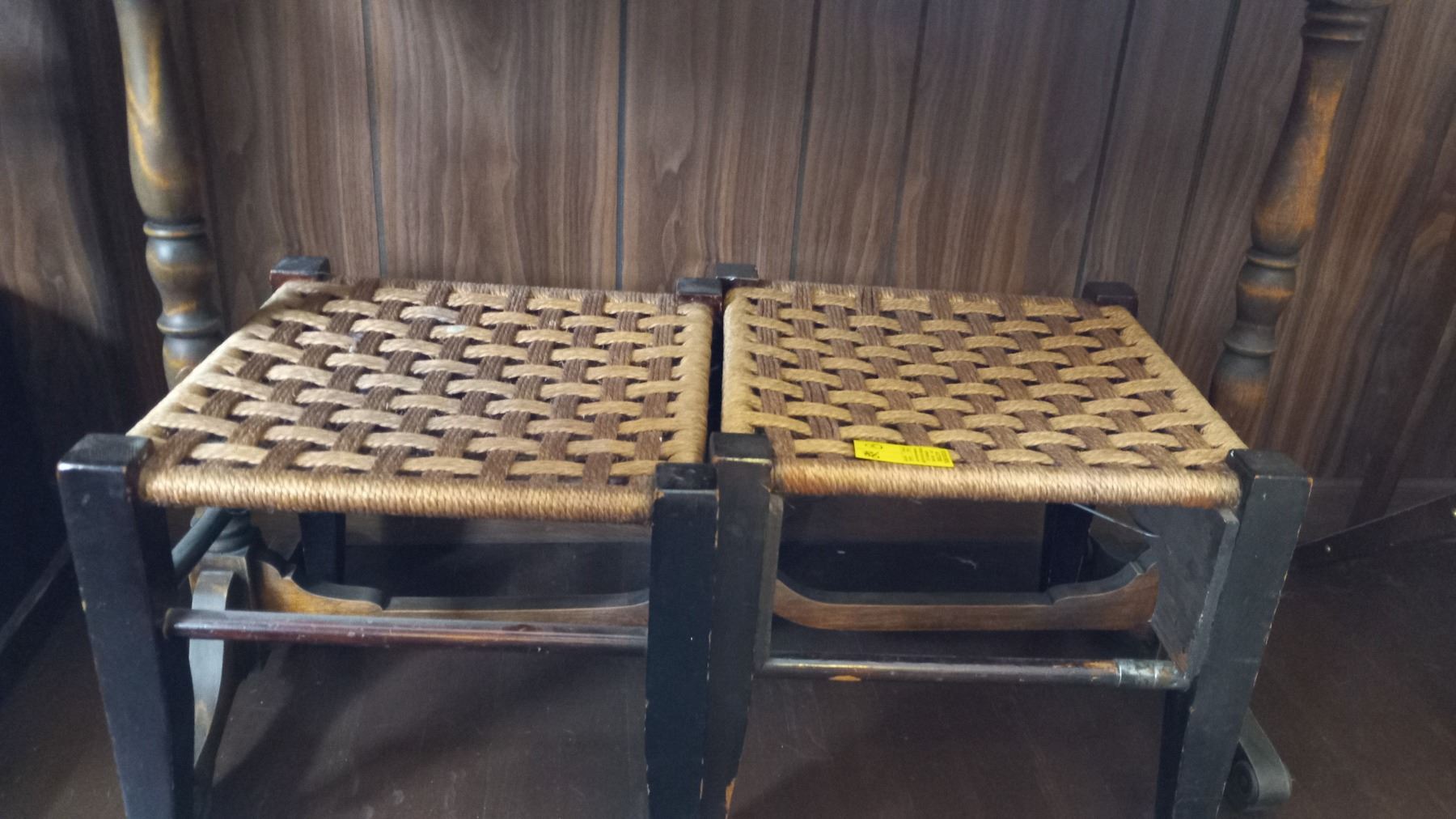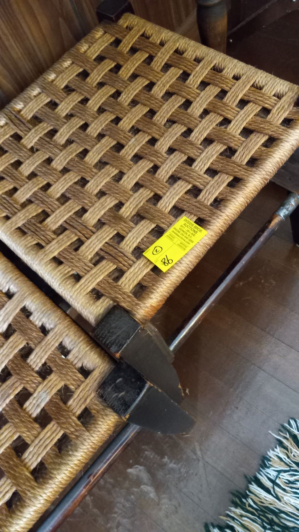 PAIR OF ROPE TOP STOOLS, 1 HAS BEEN REPAIRED