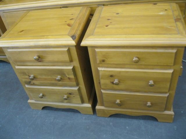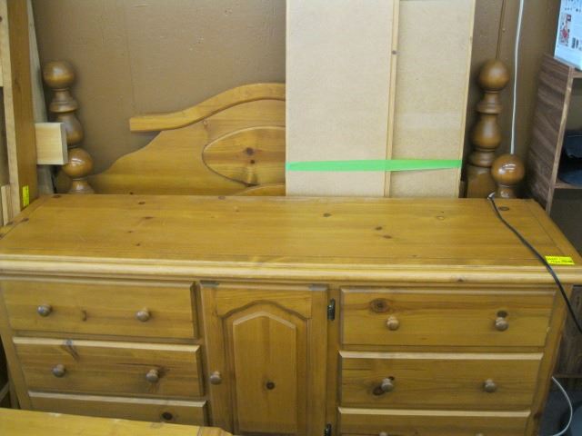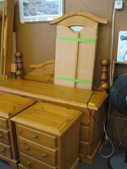 PINE BEDROOM SUITE, QUEENSIZE FRAME, DRESSER W/MIRROR & 2 NIGHTSTANDS