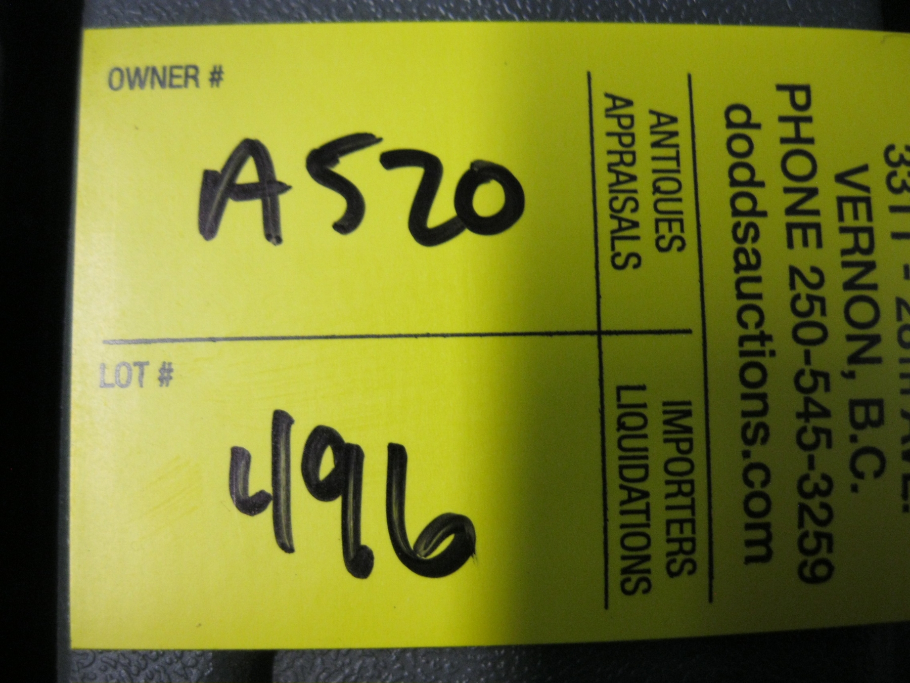 Invoices are available after the auction closes through your Live Auction World Account. If paying by e-transfer, send to: bob@doddsauction.com (auto-deposited)