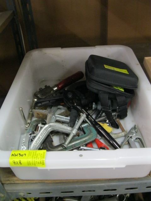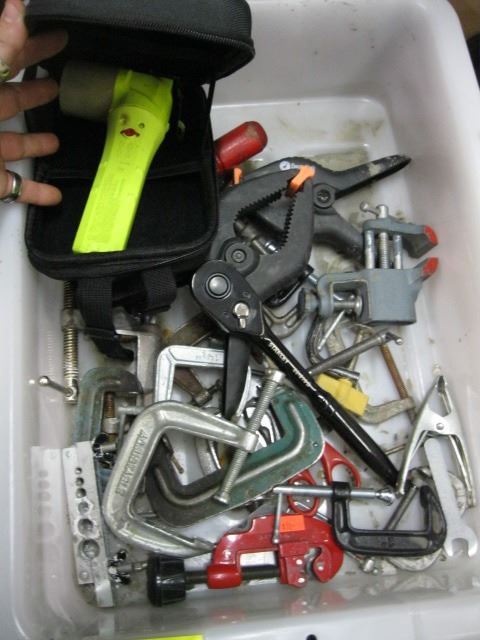 PLASTIC BIN W/ASST. C CLAMPS, ETC.