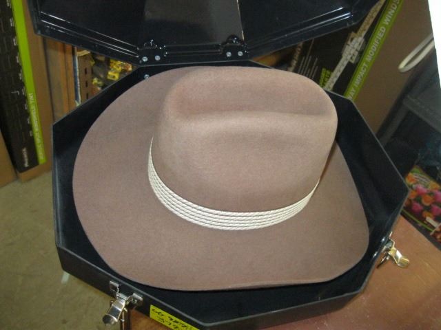 PLASTIC HATBOX W/FELT BILTMORE WESTERN COWBOY HAT, SZ 7 1/8