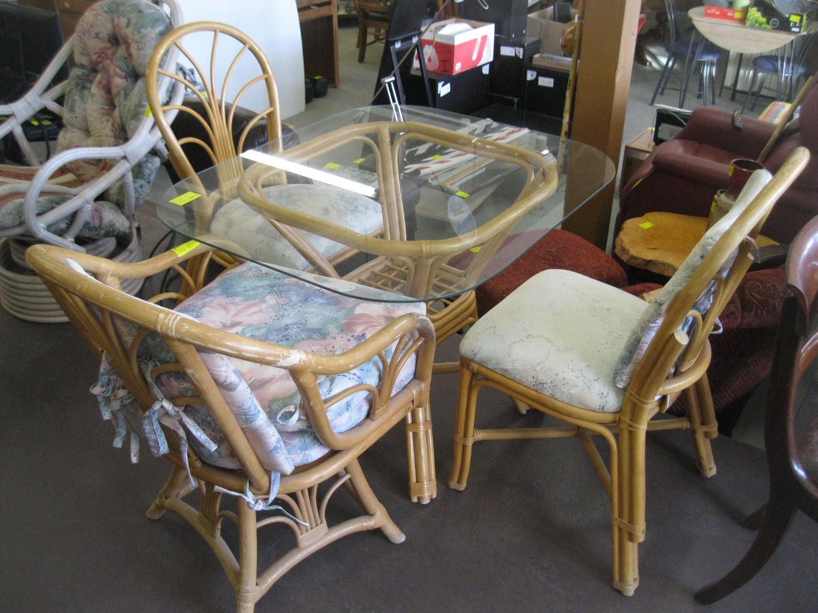 RATTAN DINETTE TABLE W/3 CHAIRS