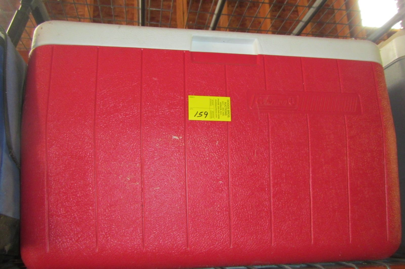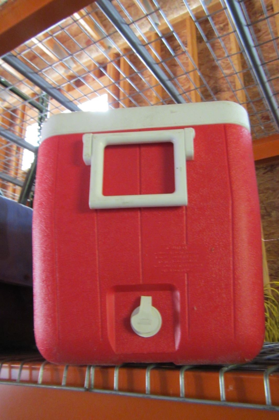 RED COLEMAN COOLER W/LOT OF COOLER BAGS