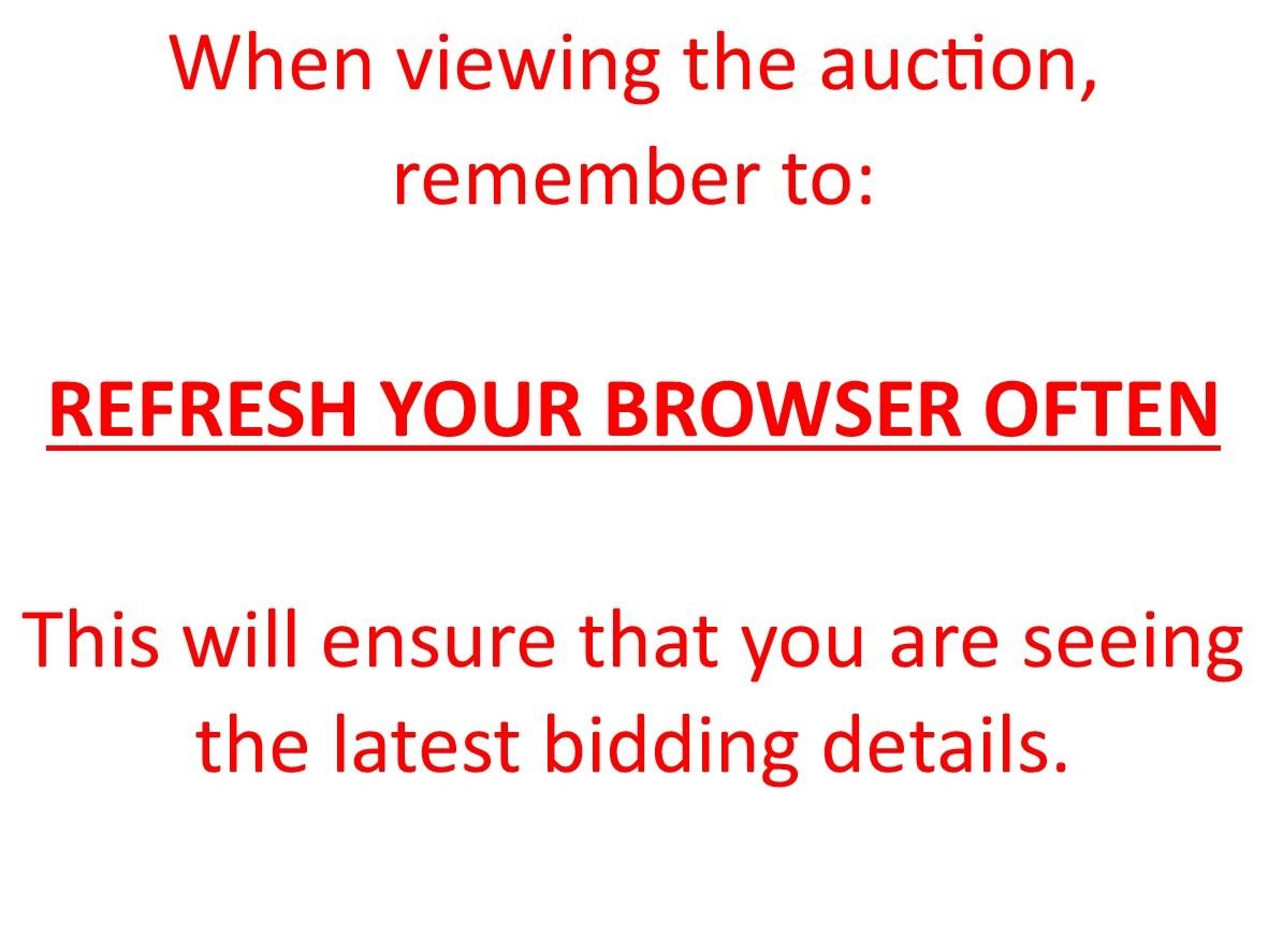 ITEMS NOT PICKED UP BY 5 PM THE WEDNESDAY FOLLOWING THE AUCTION WILL BE CONSIDERED ABANDONED AND NO REFUNDS GIVEN UNLESS YOU HAVE CONTACTED US BY THE P/U DEADLINE AND WE HAVE AGREED TO ALTERNATE P/U ARRANGEMENTS.