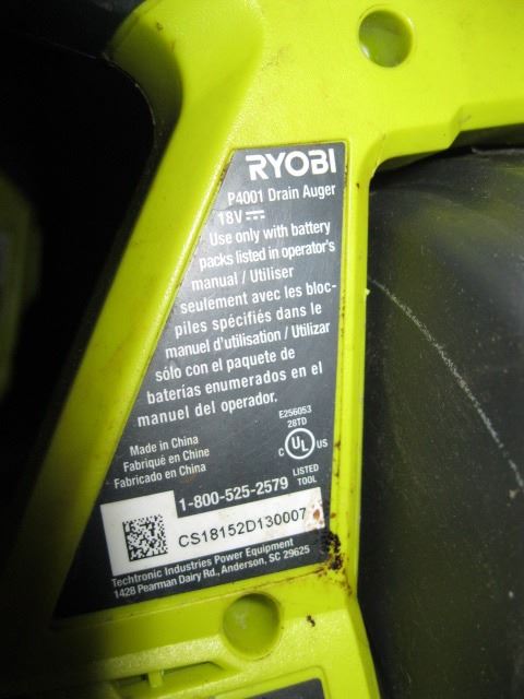 RYOBI POWERED CORDLESS AUGER & VACUUM, NO CHARGER