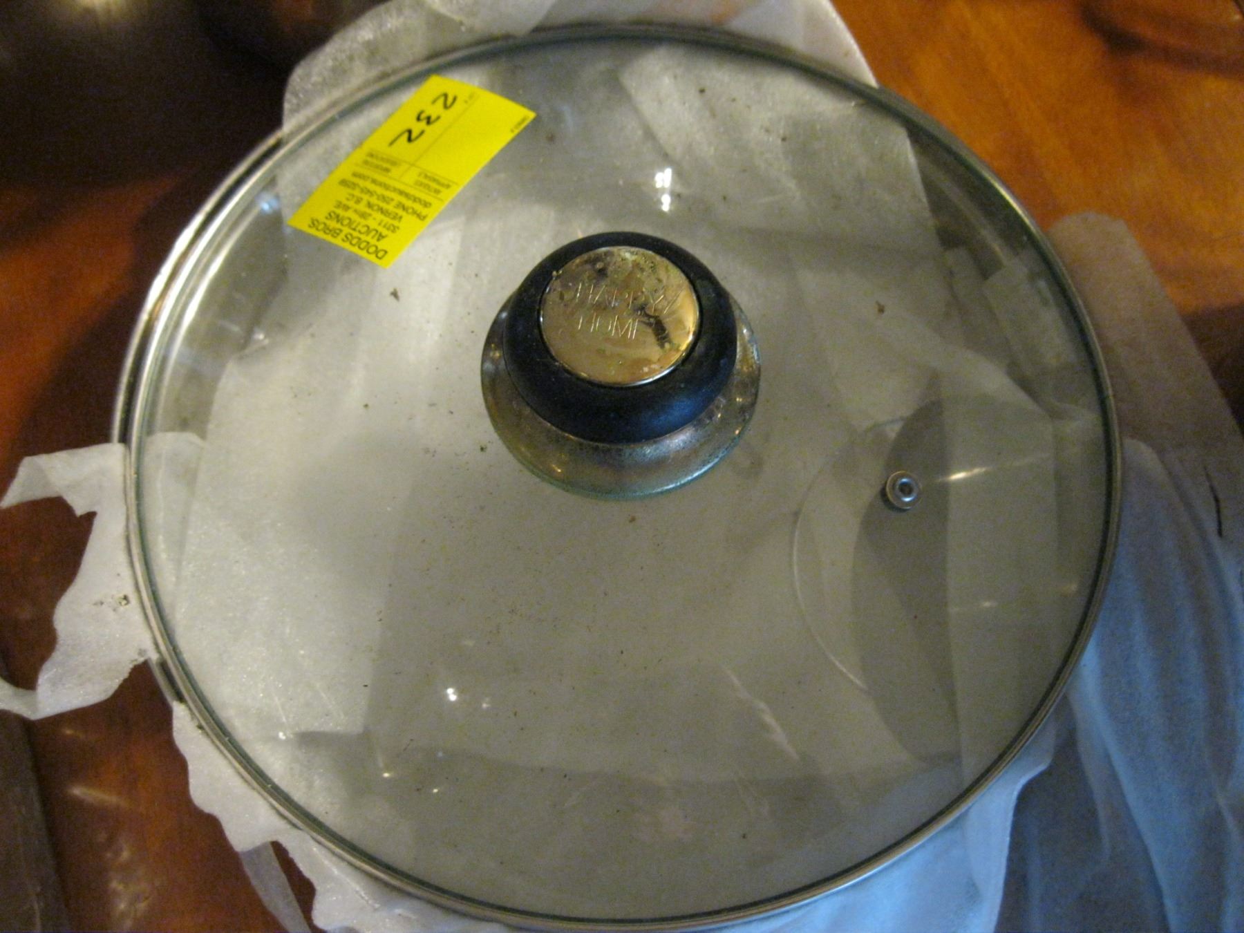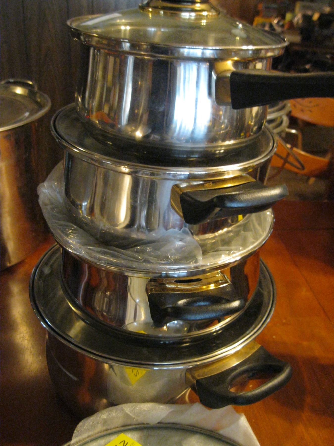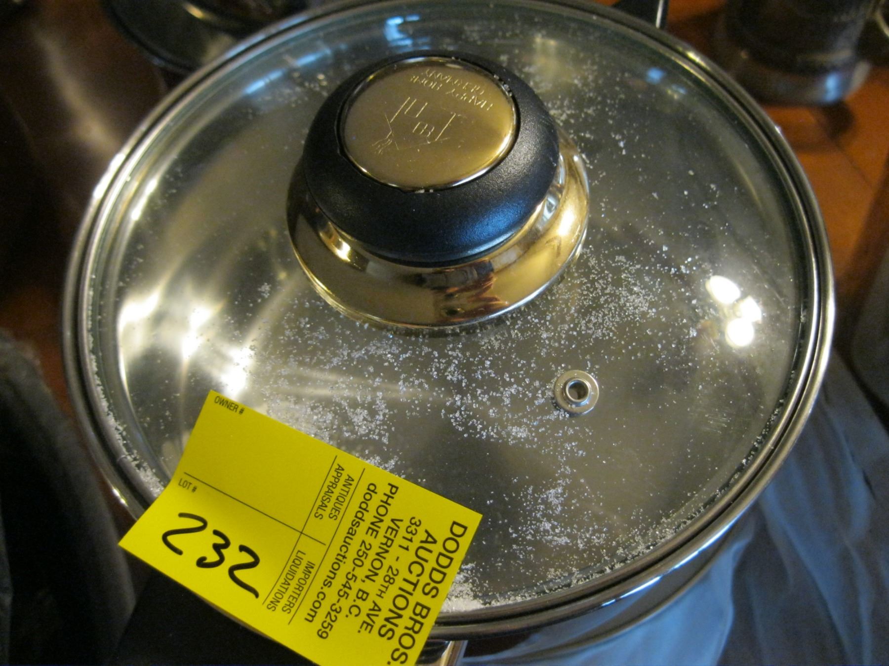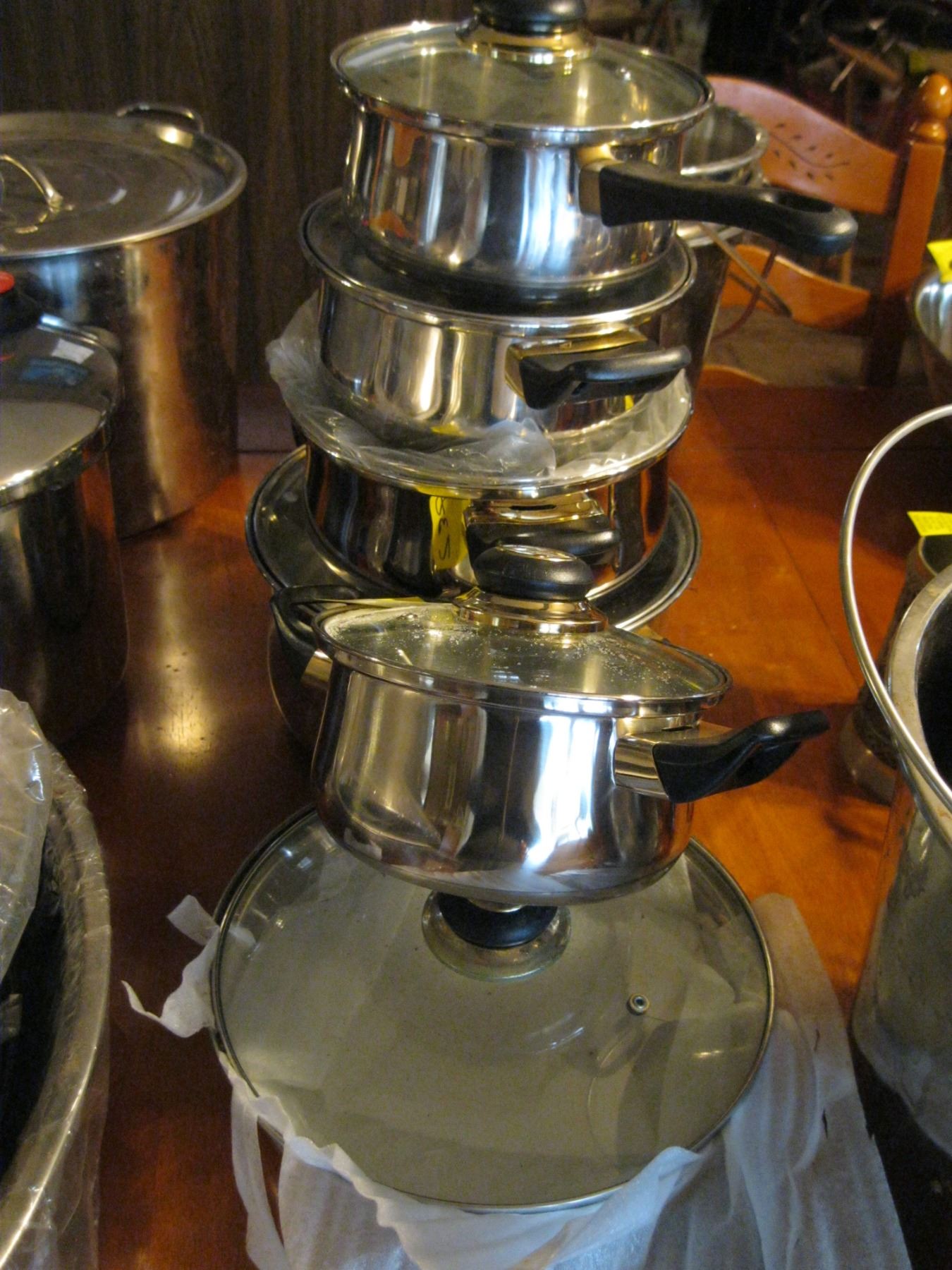 SET OF 'HAPPY HOME' STAINLESS W/GLASS LIDDED POTS