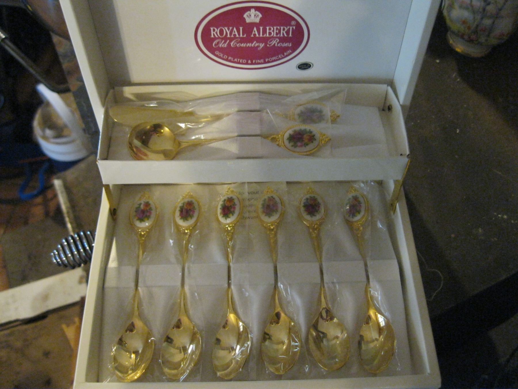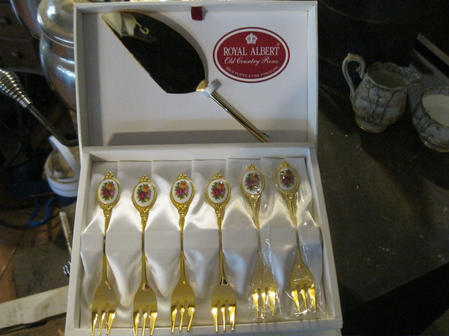 SET OF ROYAL ALBERT 'OLD COUNTRY ROSE' FORKS & SPOONS W/A ROYAL ALBERT 'SILVER BIRCH' CREAM & SUGAR