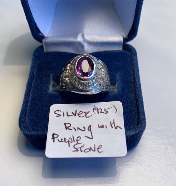 SILVER (.925) RING W/PURPLE STONE - SZ 6