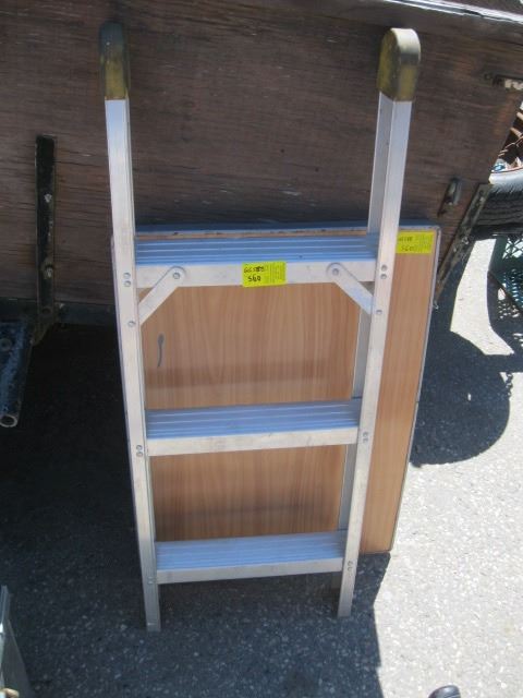 SMALL ALUMINUM STEP LADDER AND FOLDING CAMPING TABLE