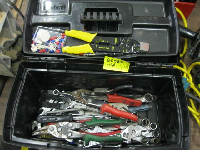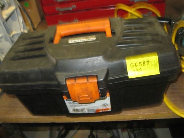 SMALL BLACK TOOL BOX WITH ASSORTED TOOLS