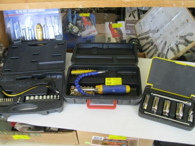 SPARK PLUG SOCKET KIT, JOBMATE SCREWDRIVER KIT & A SNAKE DRIVER (MISSING SCREWDRIVER)