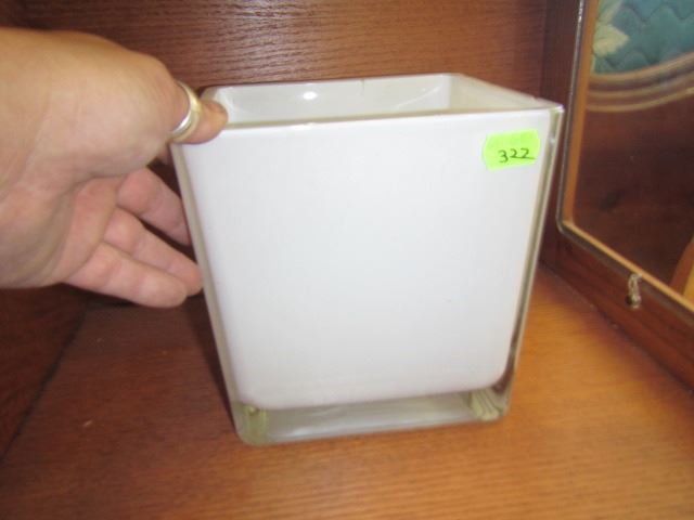 SQUARE WHITE GLASS VASE