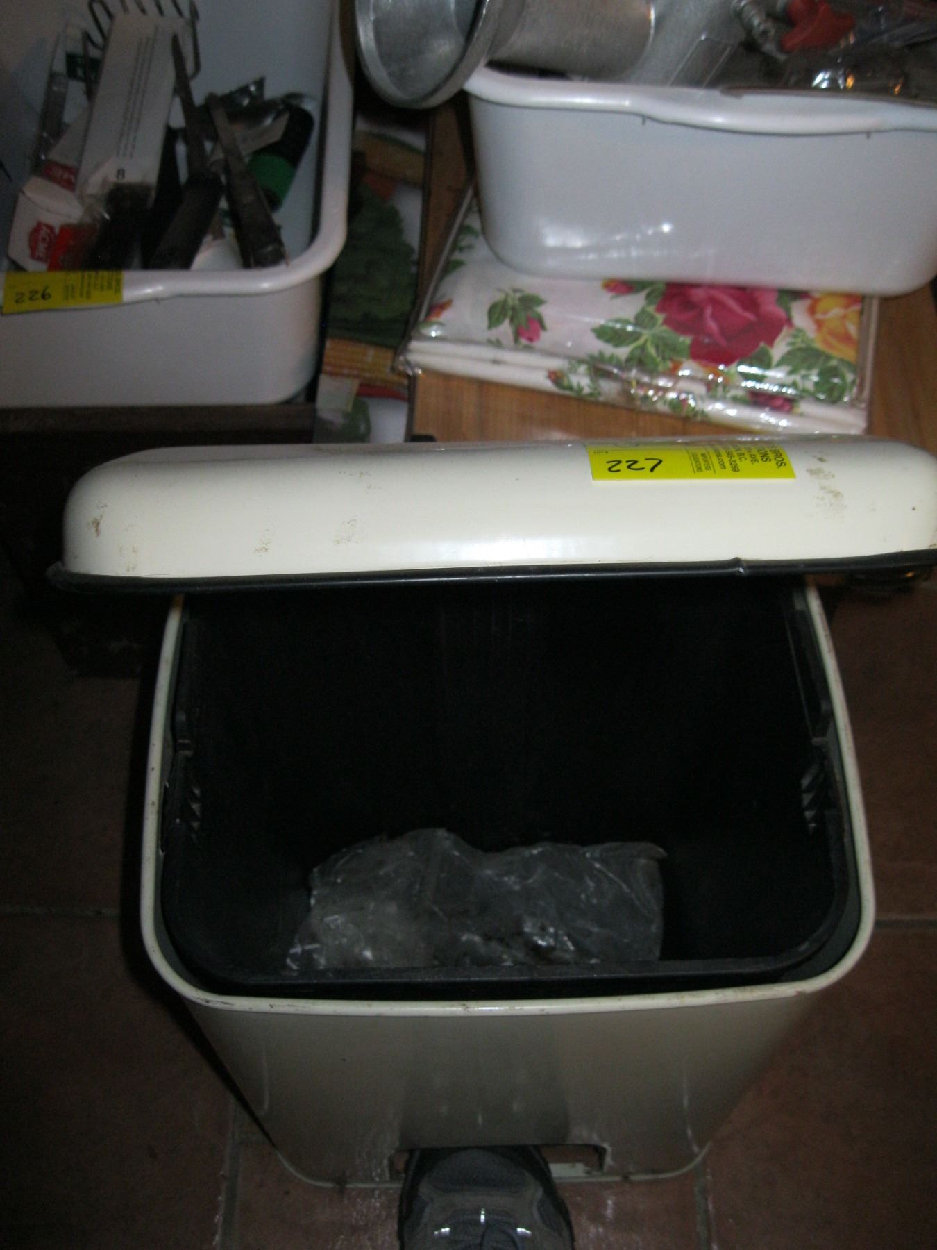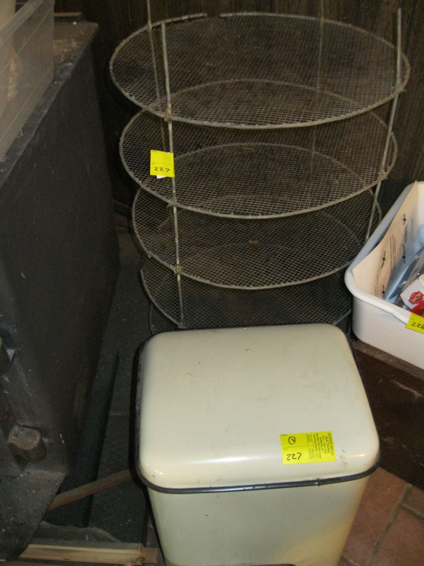 STEP GARBAGE CAN, WIRE ROUND RACK & WOODEN CRATE BOX W/HANDLES
