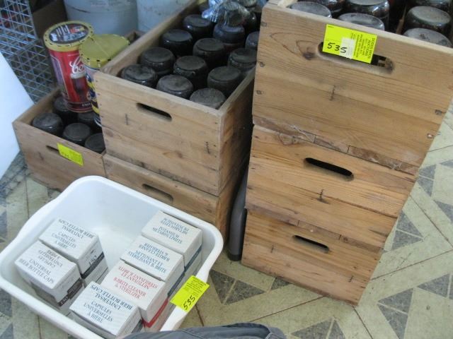 STUBBY BEER BOTTLES IN WOODEN BOXES & LOT OF BEER BOTTLE CAPS