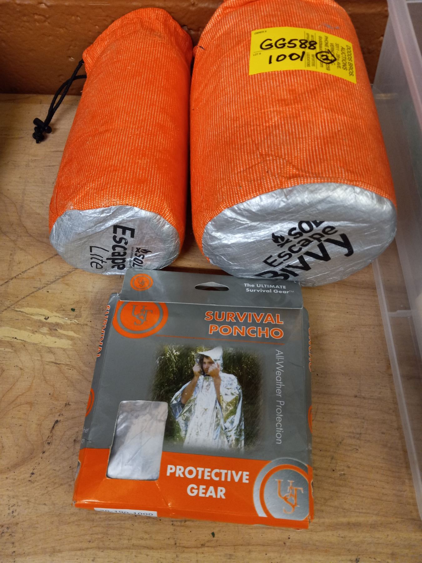 SURVIVAL PONCHO AND 2 ESCAPE BIVVY RAIN GEAR PANTS AND JACKET