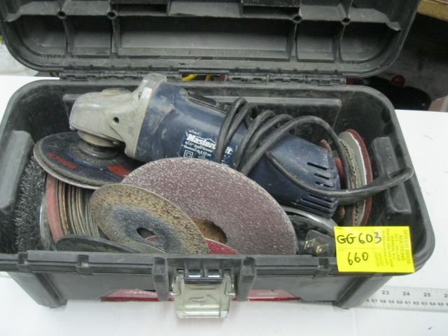 TOOL BOX WITH MASTERCRAFT GRINDER AND DISCS
