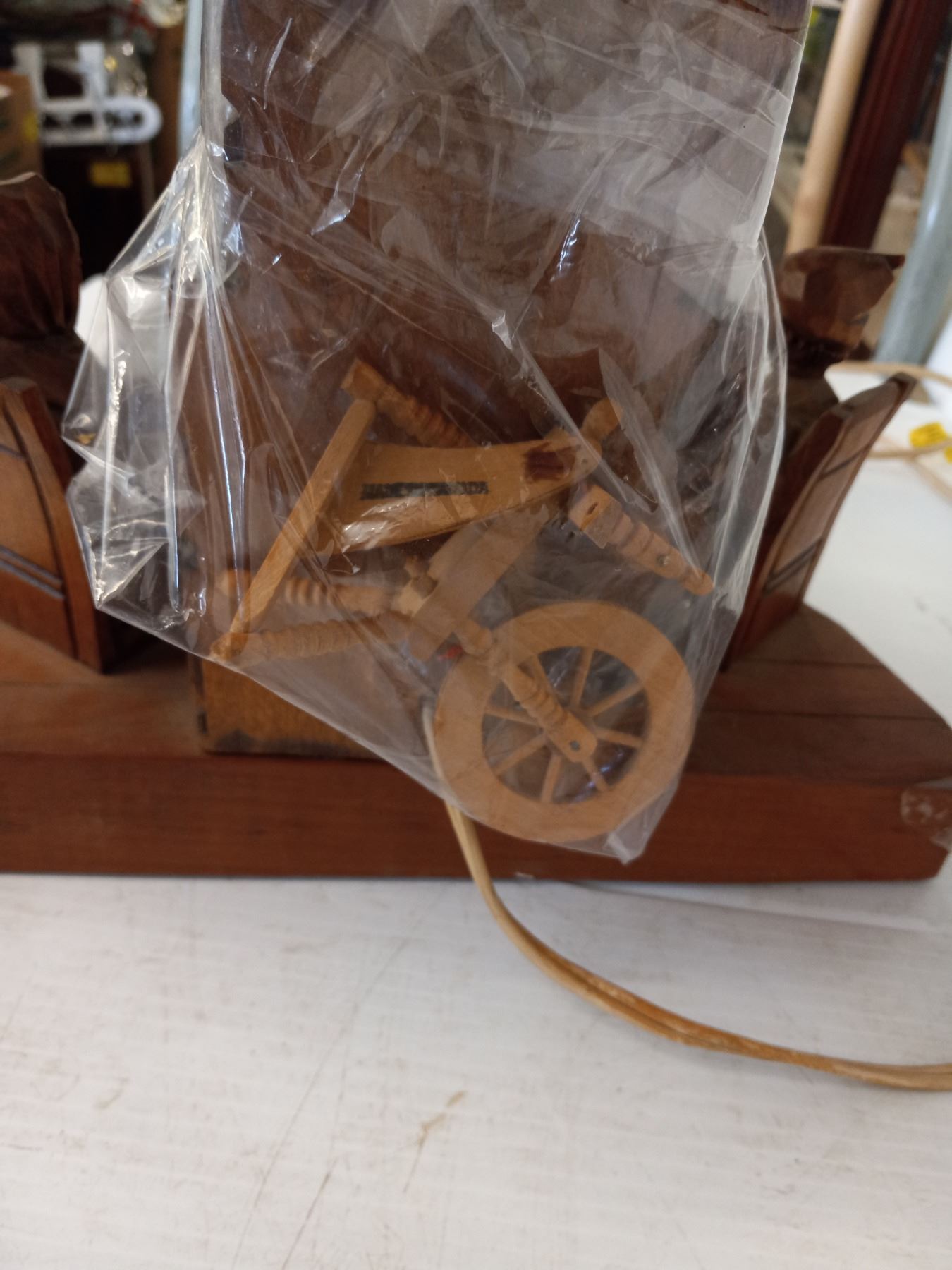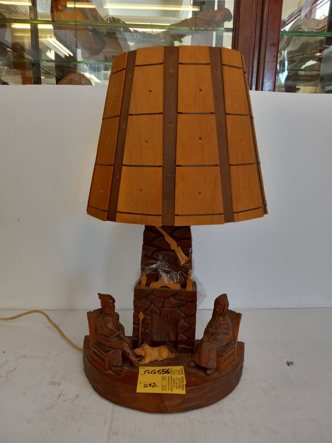 WOOD CARVED FIGURINE FIRE PLACE LAMP