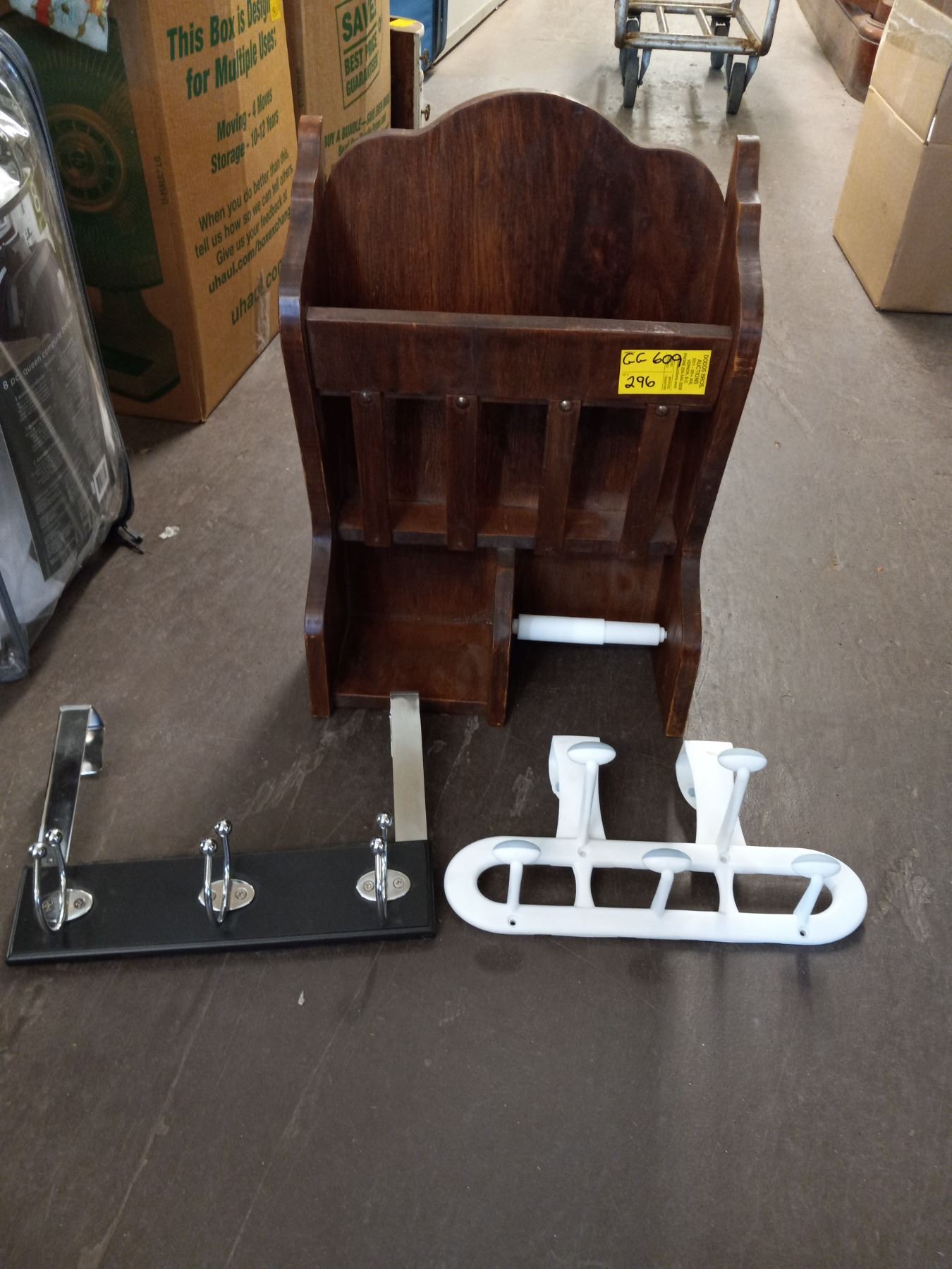 WOODEN WALL HANGING TOILET TISSUE DISPENSER AND DOOR HOOKS